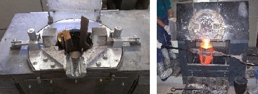 At a specific customer request, we designed a so-called crucible change furnace and afterwards added this furnace design to our portfolio. This type of induction furnace combines the features of a crucible melting furnace and a lifting crucible furnace. It is used when different alloys need to be melted in rapid succession in a single furnace vessel. A standard prefabricated crucible is lowered into the furnace chamber via a bottom cylinder, clamped in place, and sealed at the top with a sealing cord against the coil's leveling compound. Once the crucible's contents have melted, it can be tilt by hydraulic, just like in a conventional induction furnace, with the prefabricated crucible remaining in the clamped position. When a change of alloy is required, the clamp is released and the sealing cord is removed. The prefabricated crucible is lifted via the bottom cylinder and removed, and the next prefabricated crucible for the next alloy can be inserted. The entire process of changing the prefabricated crucible takes only a few minutes. | |